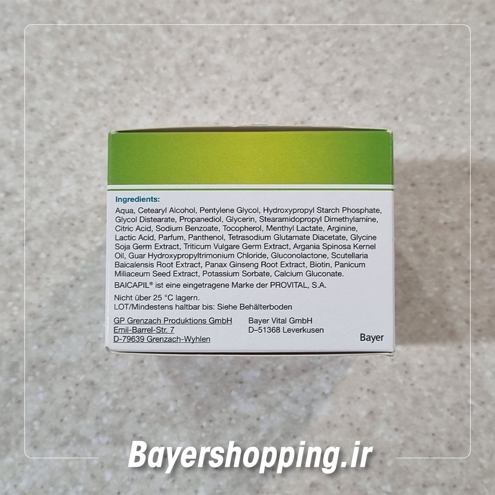 حجم این محصول ۱۸۰ میلی ‌لیتر است و حاوی جنسینگ، پروویتامین ب۵، ارزن، بایکاپیل، بیوتین، روغن آرگان و انواع مواد گیاهی و معدنی می‌باشد.